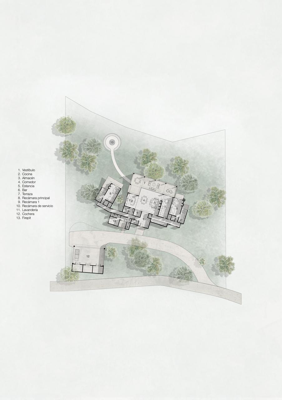 Inspirados por la fuerza sutil del entorno, desarrollamos una residencia que no interrumpe el paisaje, sino que lo abraza. Cada trazo, cada material y cada vista están pensados para integrarse con la vida silvestre y la esencia del bosque.