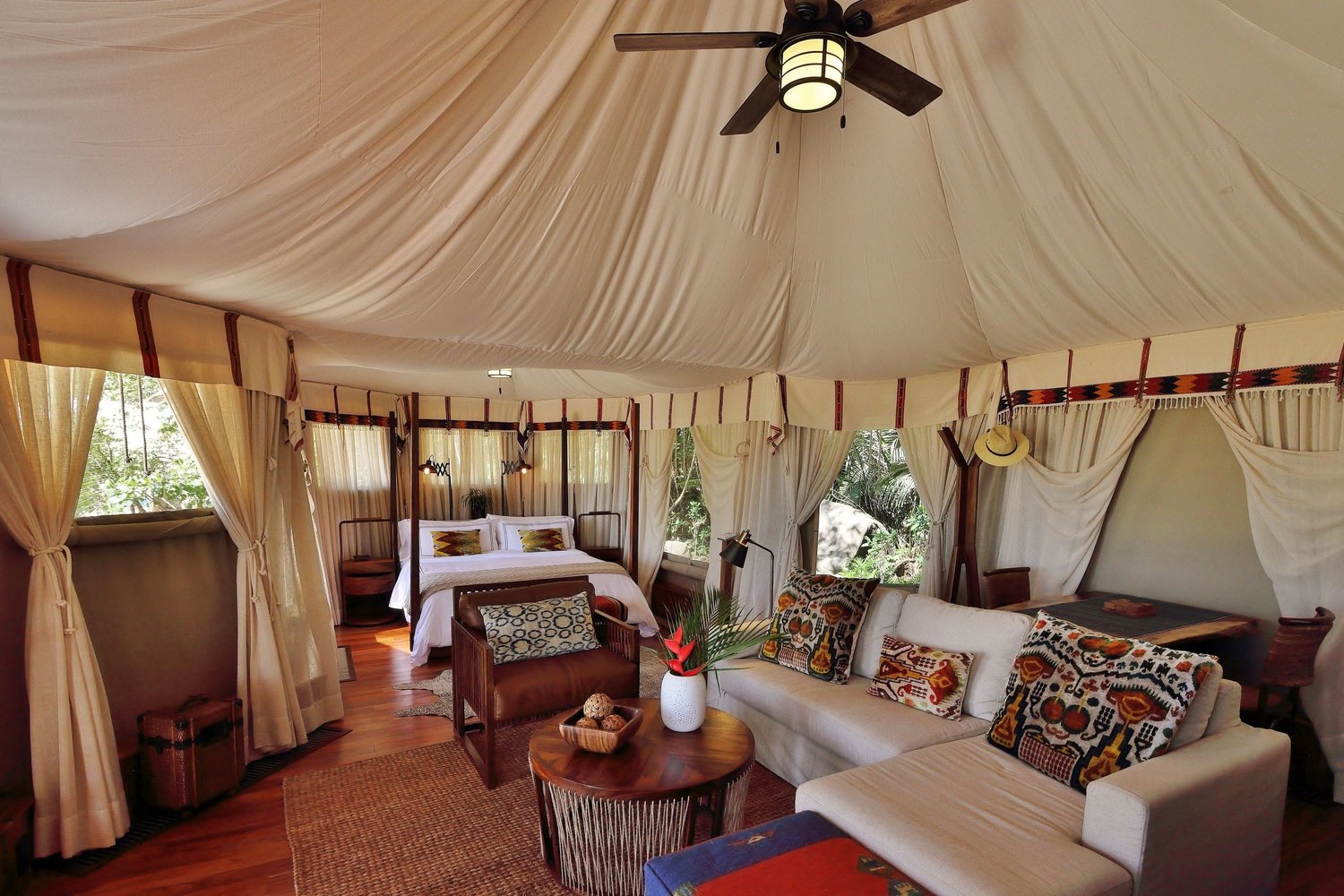 Un exclusivo complejo de seis tiendas de lujo, ubicado a 4 km del Océano Pacífico en la Riviera Nayarit, ofrece una experiencia única de "glamping". Rodeado por la selva, el diseño integra lujo y naturaleza.
